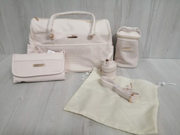 PASTELLO, set borsone nascita completo, il kit contiene borsone, porta biberon, portaciuccio, fasciatoio ripiegabile, tracolla staccabile, sacca per cambio, tutto in ecopelle foderato lavabile.